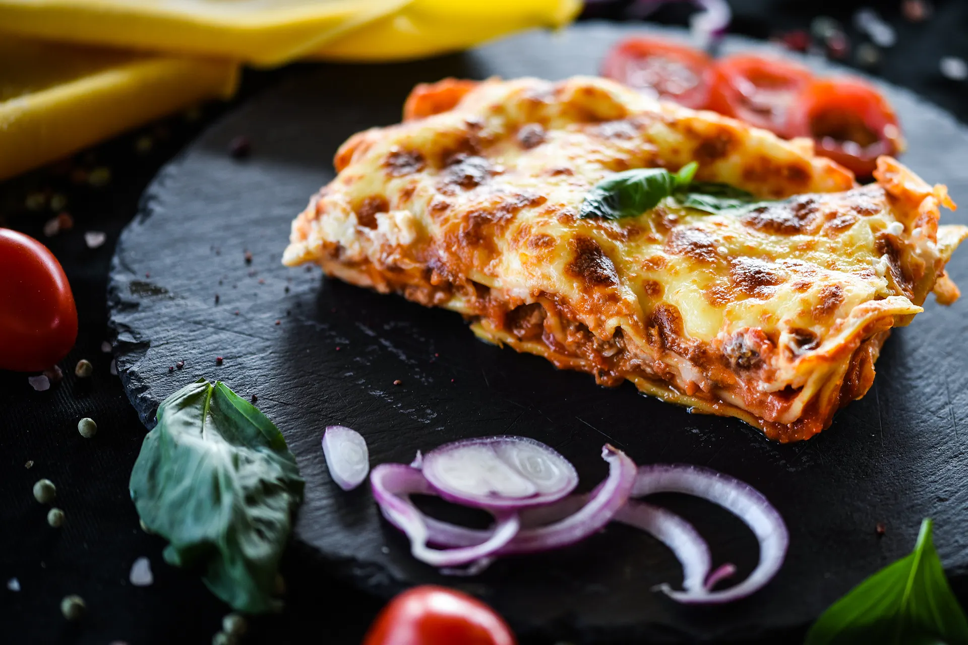 Lasagne à la sauce bolognaise et béchamel, gratinée au four